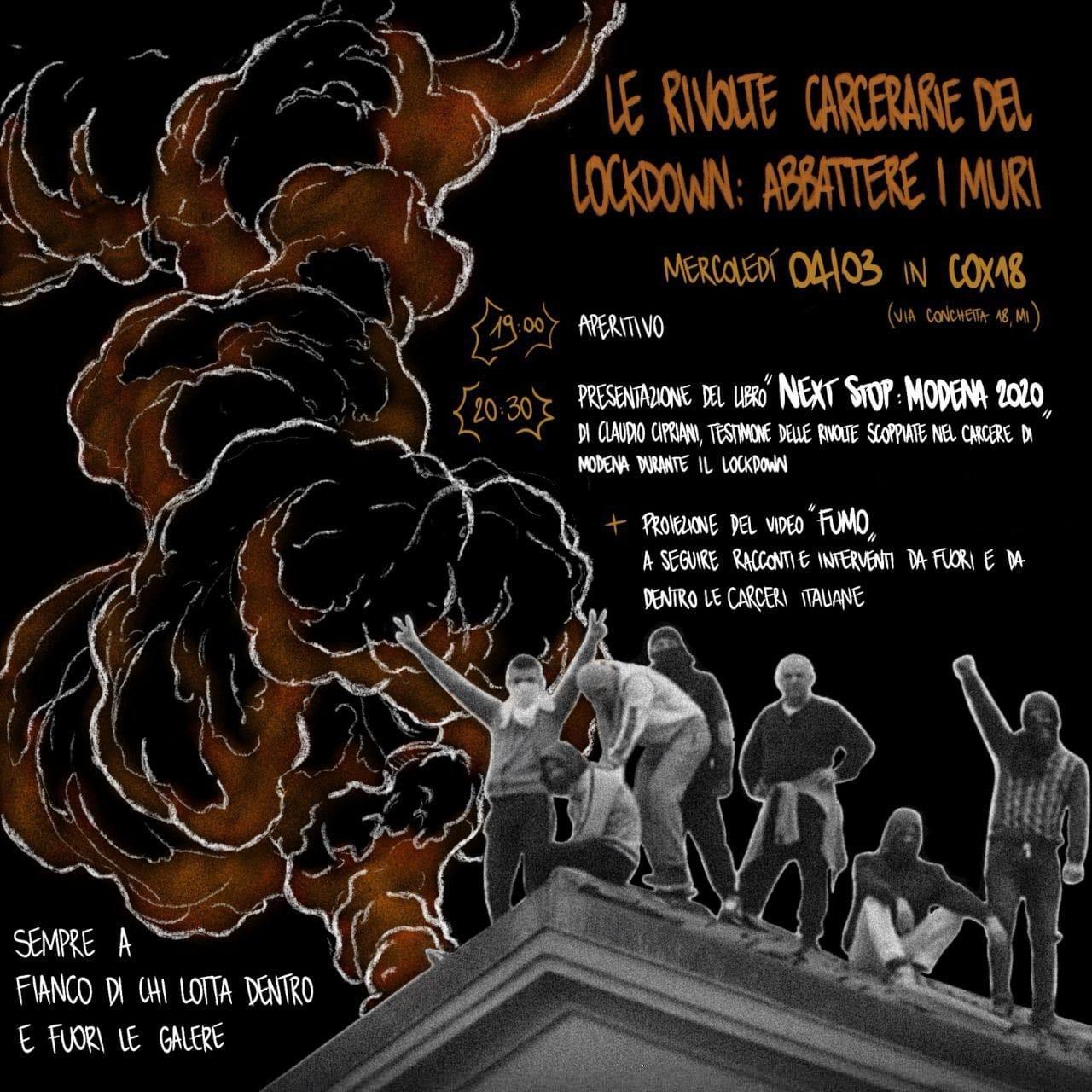 ore 20.30: presentazione del libro “NEXT STOP: MODENA 2020” di Claudio Cipriani, testimone delle rivolte scoppiate nel carcere di Modena durante il lockdown